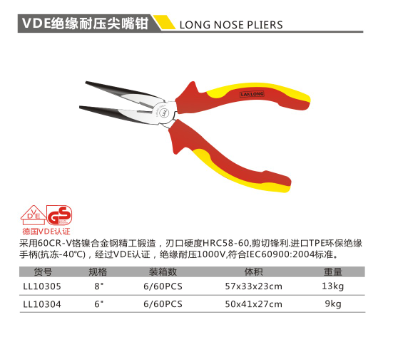 VDE絕緣耐壓尖嘴鉗